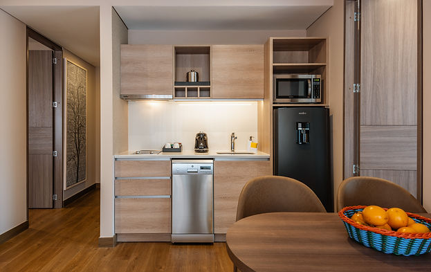 A través de una paleta cromática divertida, maderas de distintos colores, piedras grises, textiles sobrios y algunos estampados, iluminación divertida y detalles urbanos por todo el hotel, dimos vida al primer Residence Inn de Colombia.